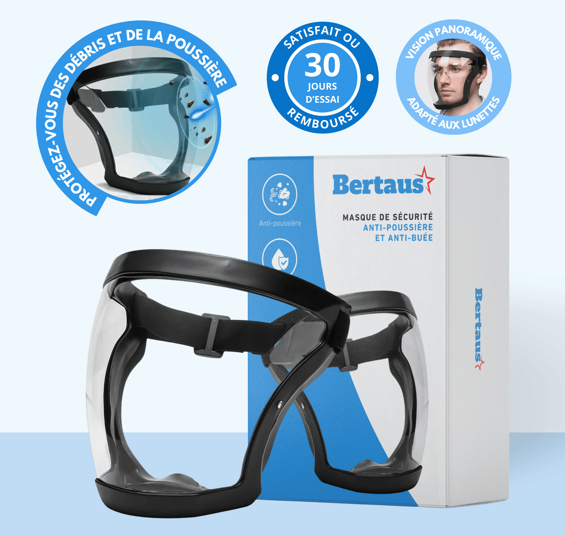 Protégez-vous contre les éclaboussures, la poussière et les particules volatiles ! Contrairement aux masques fragiles et inconfortables, notre masque de sécurité est conçu pour les environnements les plus exigeants. Robuste et confortable, il s'adapte à toutes les situations.