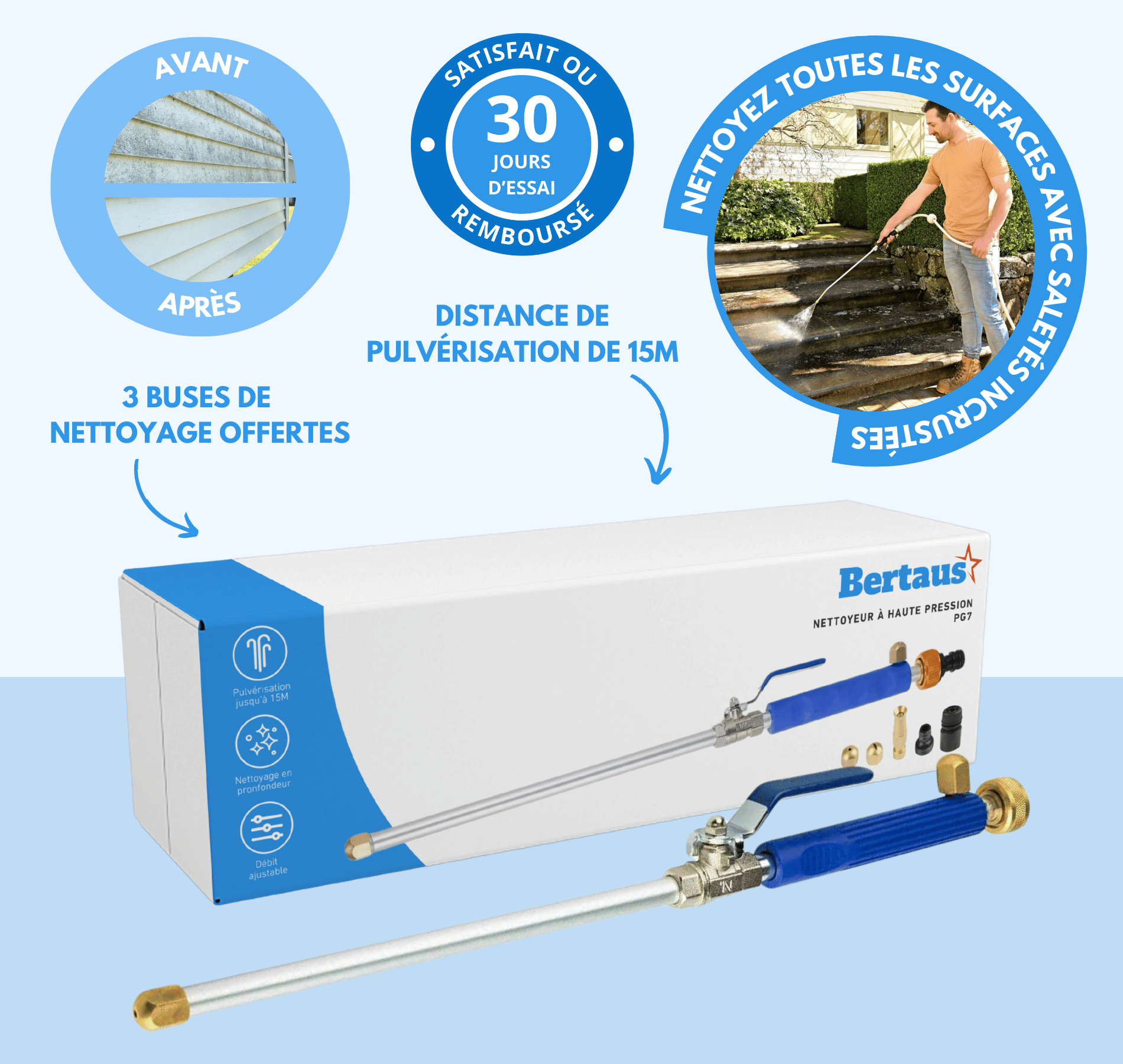 Transformez votre simple tuyau d’arrosage en un nettoyeur haute pression efficace. Gain de temps assuré et entretien de vos espaces extérieurs sans contrainte.