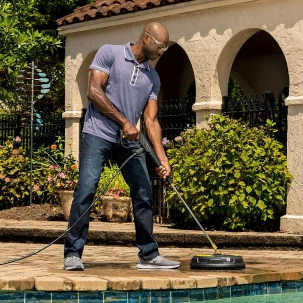 Grâce à sa pression élevée, le nettoyeur de surface élimine facilement les taches, la saleté et les moisissures sur toutes vos surfaces extérieures. Son jet puissant et réglable vous permet de contrôler l'intensité du nettoyage, offrant des résultats professionnels à domicile.