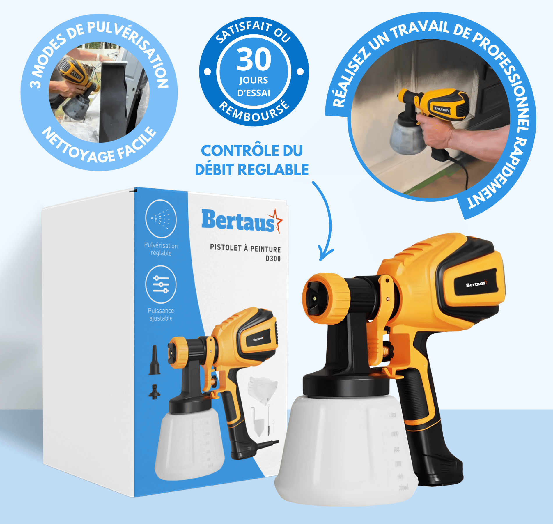 Peinture murale, meuble ou extérieur : son système à faible pression et haut volume assure une couche homogène et nette. Vous gagnez du temps et évitez les coulures disgracieuses.