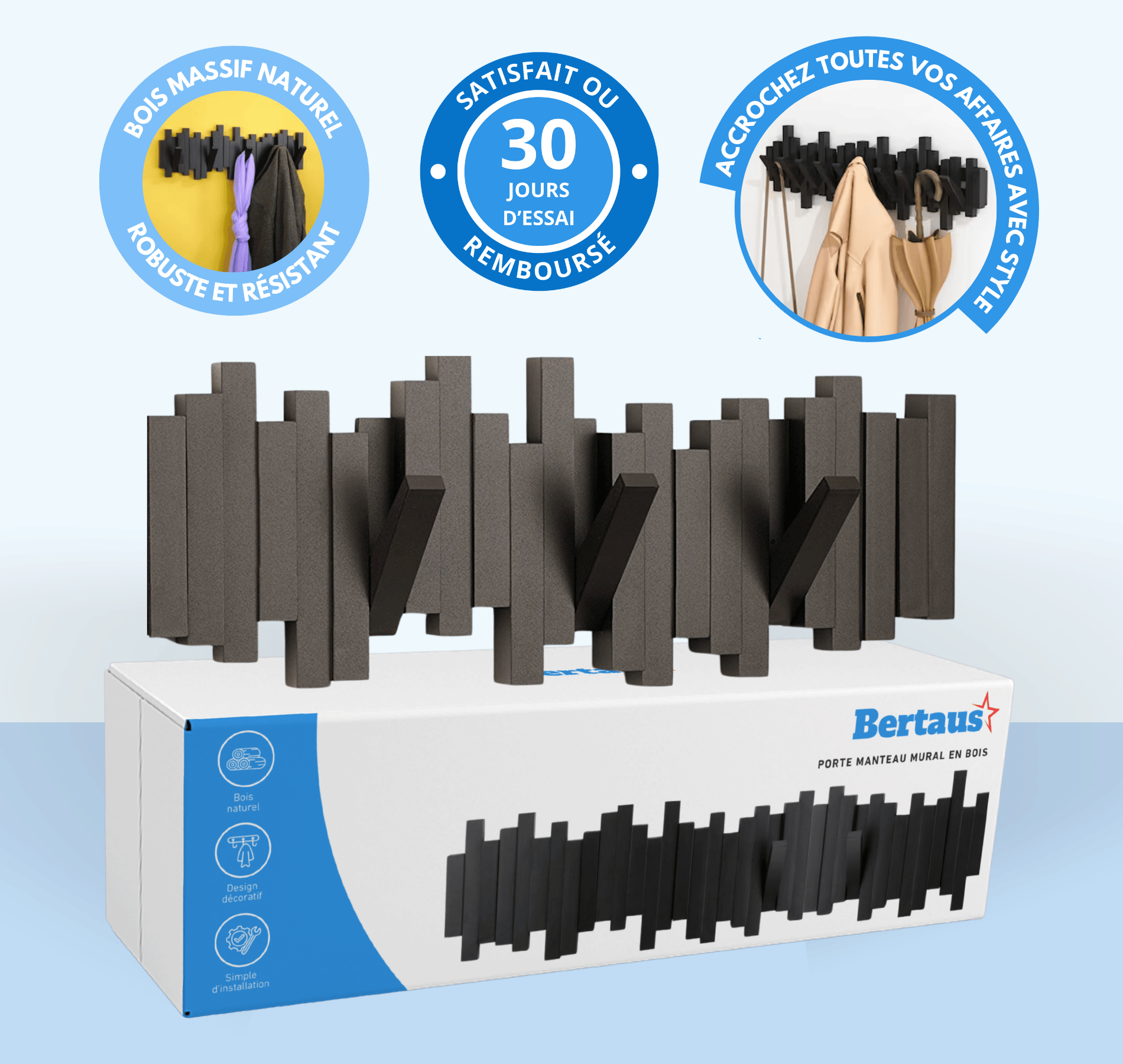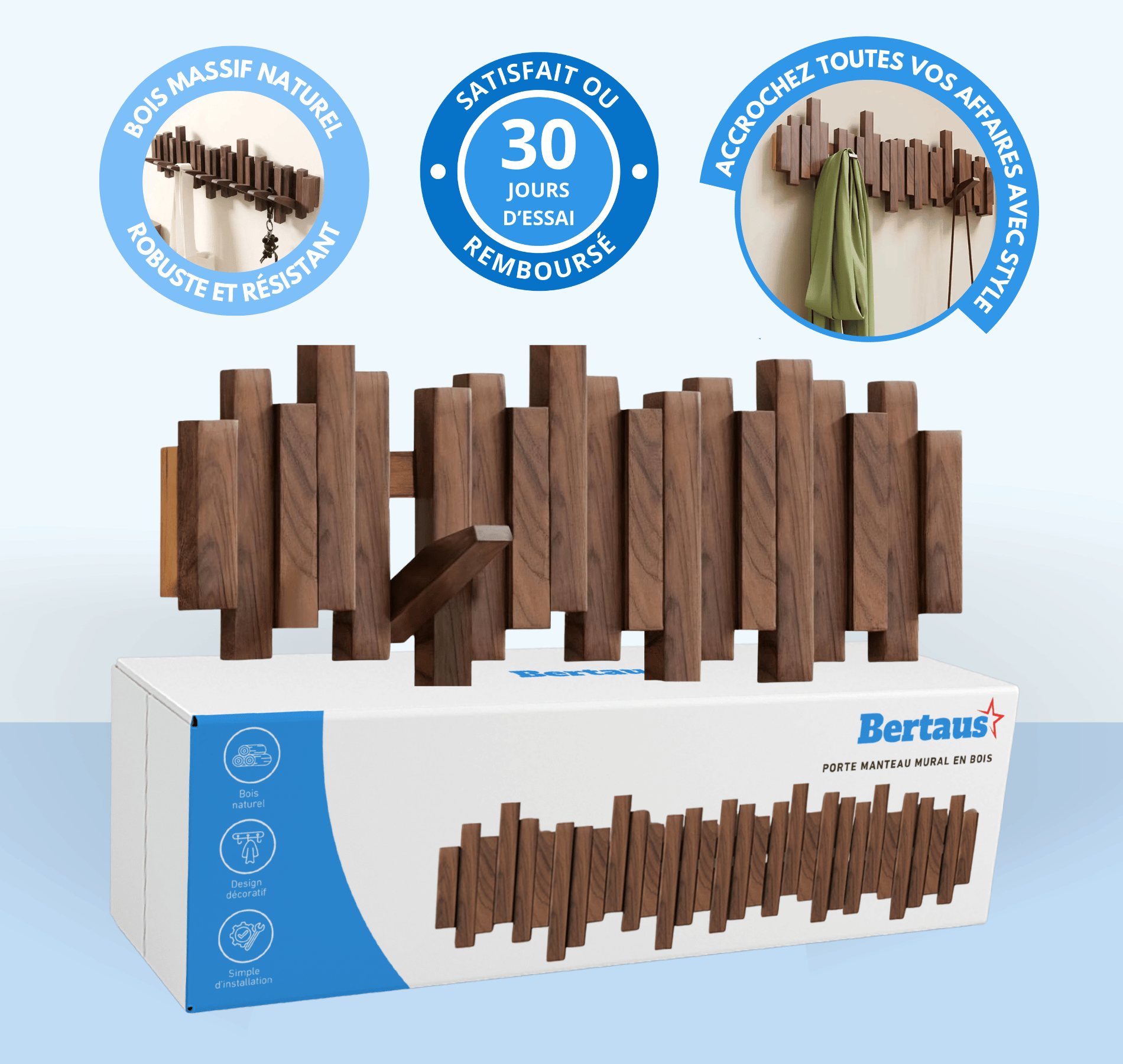 Transformez votre mur en une œuvre d’art utile. Ce porte-manteau en bois massif allie élégance naturelle et praticité avec ses crochets dissimulés, prêts à apparaître d’un simple geste. Idéal pour sublimer votre entrée, chambre ou salle de bain tout en restant ultra fonctionnel.