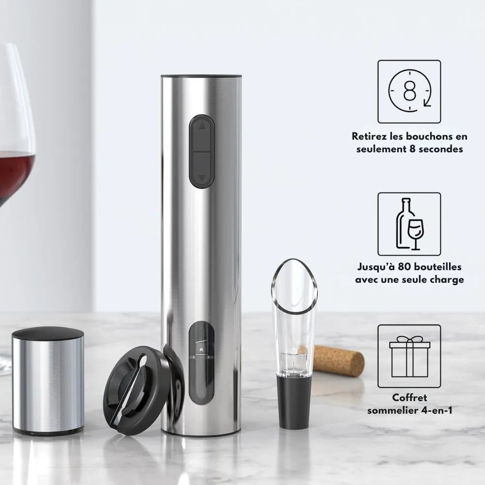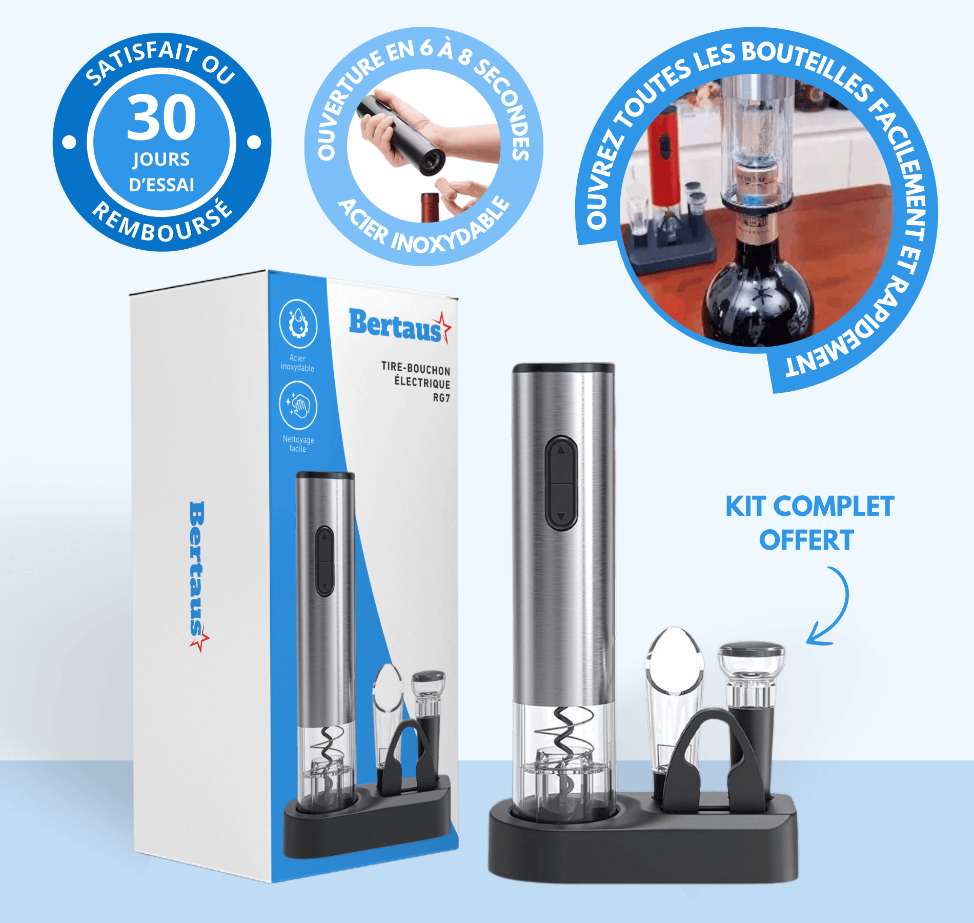 - Ouverture rapide : débouche une bouteille en 6 à 8 secondes.