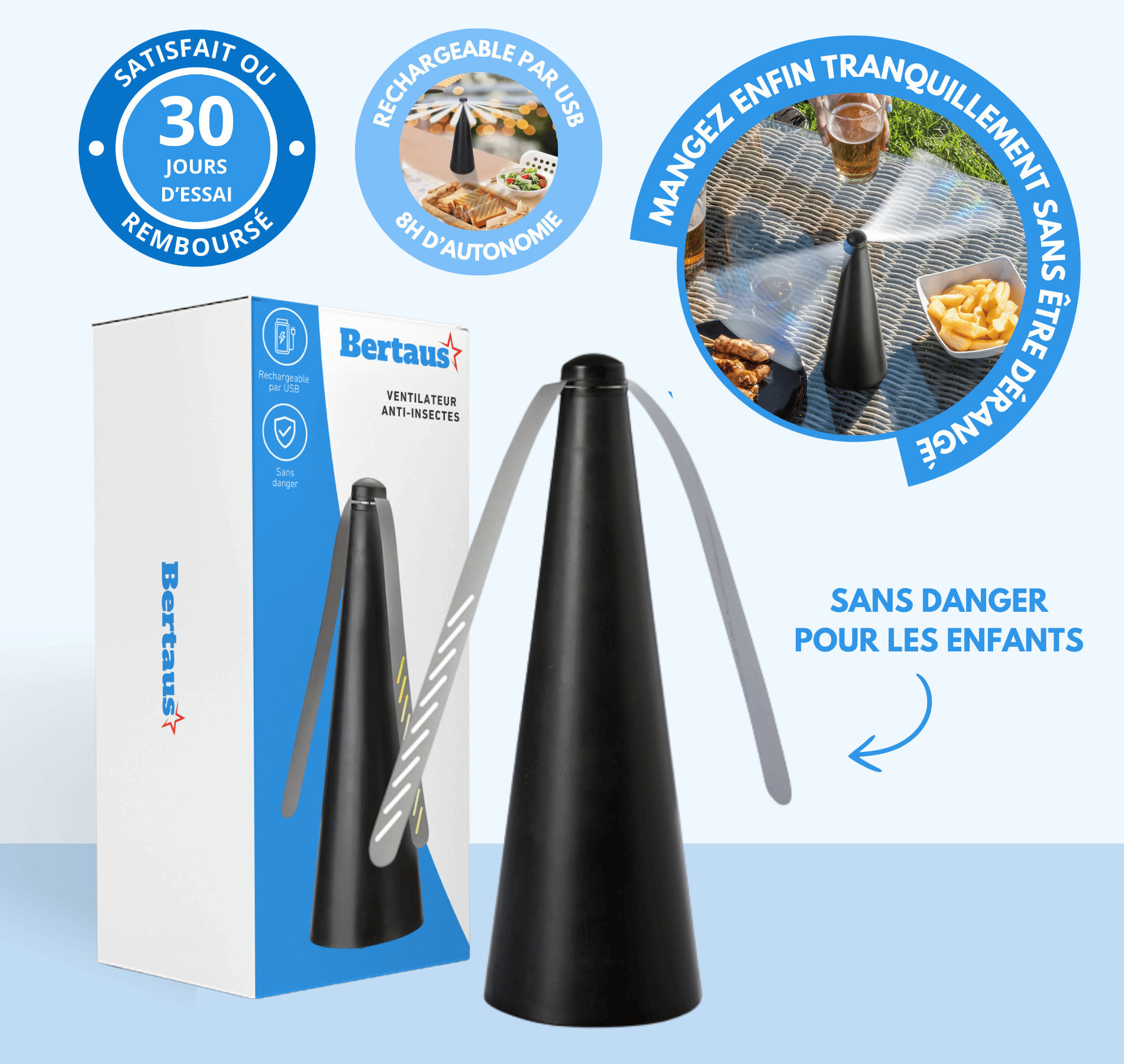 Fini les couvercles sur les plats, les mains qui battent l’air ou les cris à chaque insecte qui s’approche. Ce petit appareil discret change tout : vos repas restent calmes, vos invités détendus, et les insectes s’éloignent d’eux-mêmes.